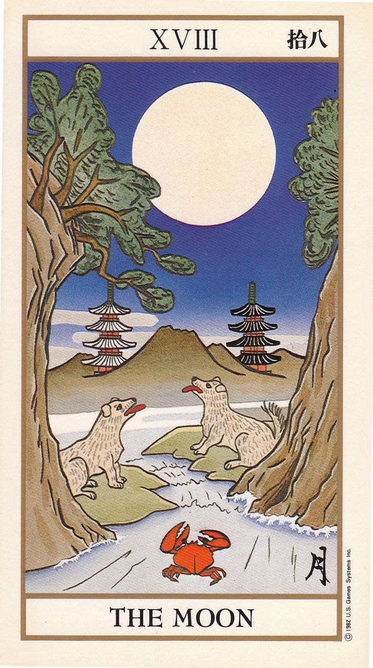 Старшие Арканы: Луна и Влюбленные.