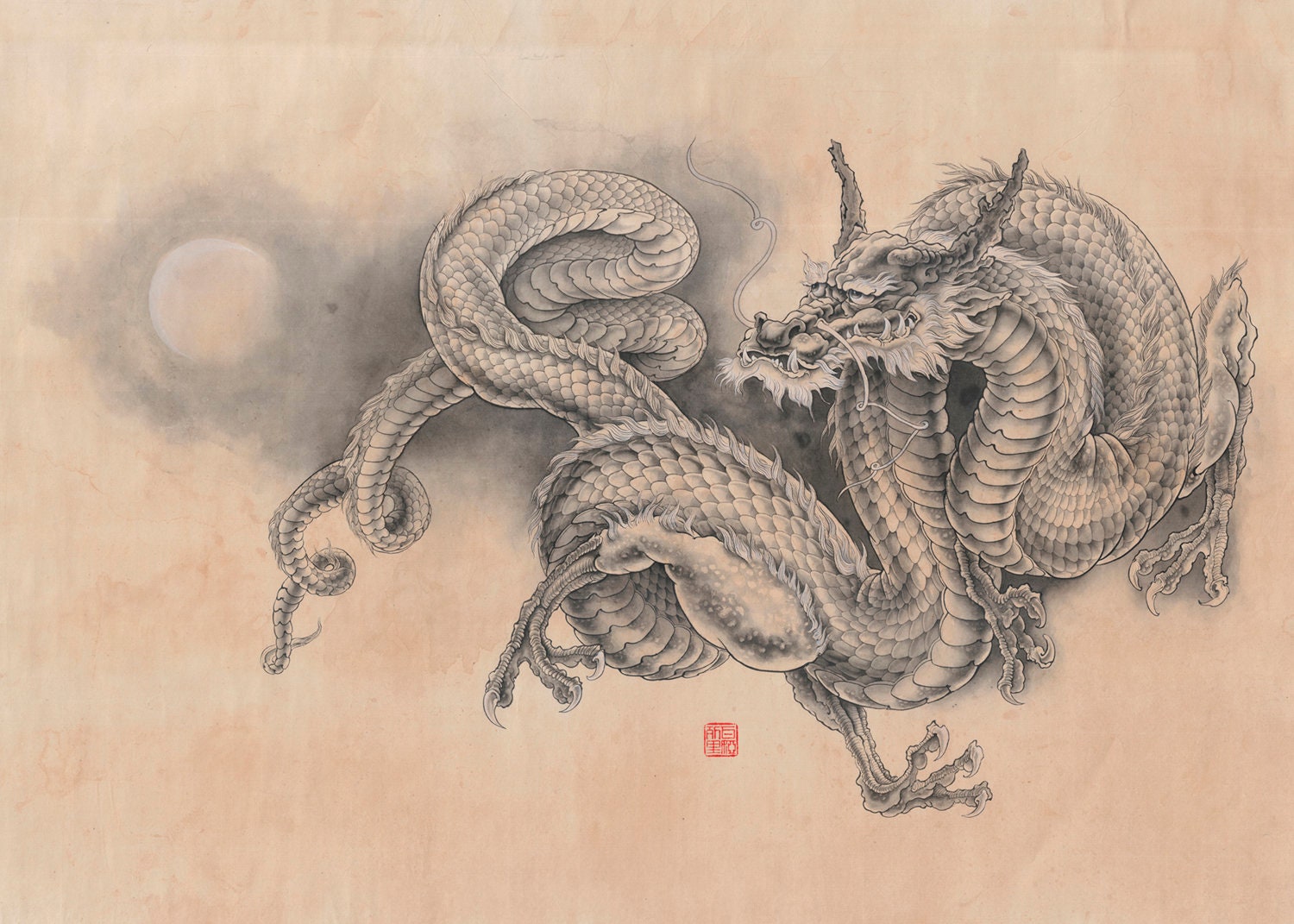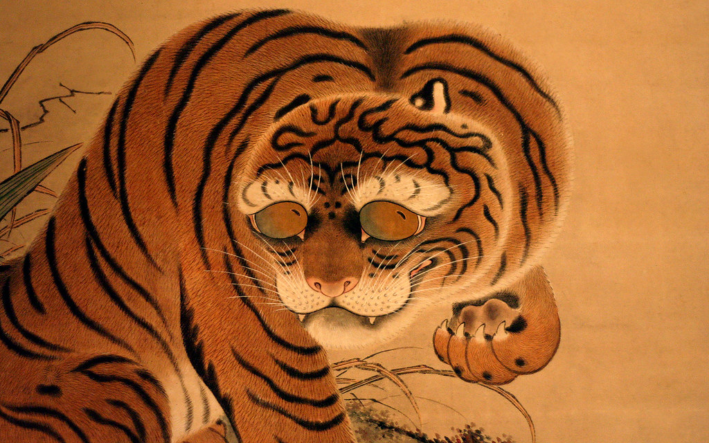 Могучий Тигр смотрит на солнце тремя головами: мудрая Черепаха ожидает заката, яростный Феникс стремится стать частью восхода, могучий Дракон охотно поприветствует владыку в зените. Кто из них направит свой взор в ночь? Нити тонкой крови струятся с белоснежных клыков свирепого хищника.