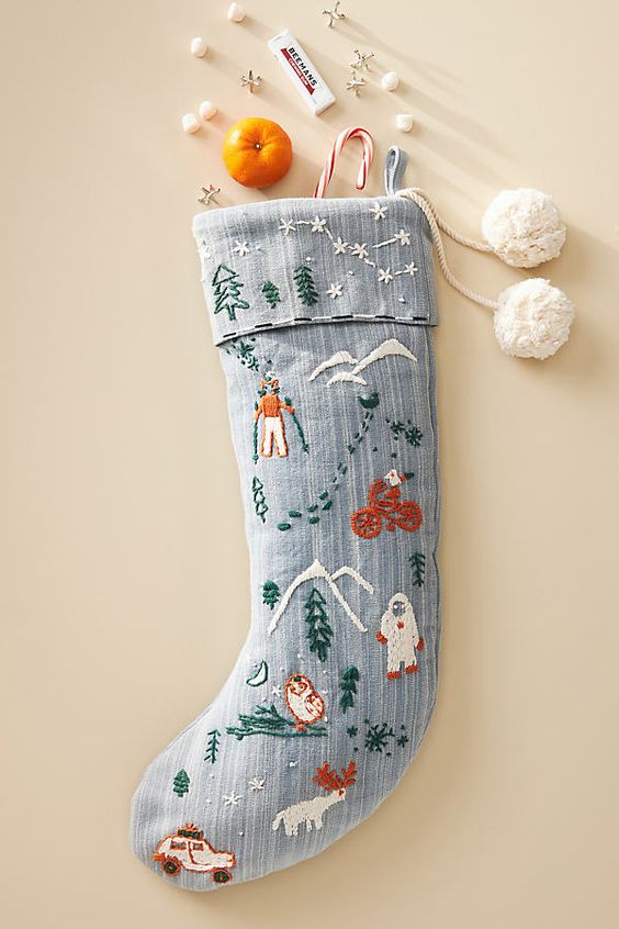 Вы можете сделать такой носок своими руками или купить уже готовый. Главное условие — обязательно подписать его, иначе ваш подарок может не найти адресата. Мы красиво повесим их на веранде и в них можно будет складывать небольшие подарочки. Когда же настанет время подарков, вы сразу приятно найдете их в одном месте, чтобы ничего не растерялось!