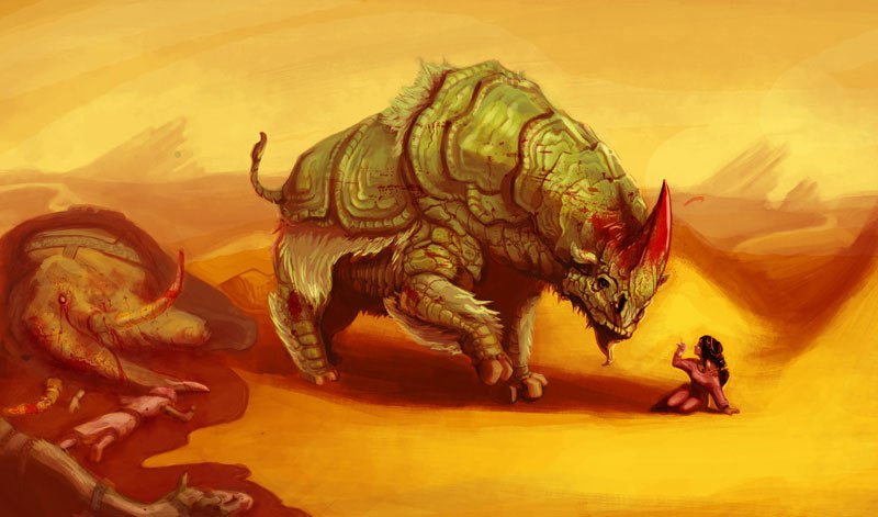 Табун каркаданнов приносит в выбранный регион песчаную бурю от которой нельзя спрятаться. Многие будут ранены (но монстры в последнюю очередь). Что-то будет разрушено: ресурсы испортятся, союзники ослабнут, связи исчезнут. Могут пропасть даже Тайны и Подвиги. ОНИ ВОРУЮТ СЪЕСТНОЕ!