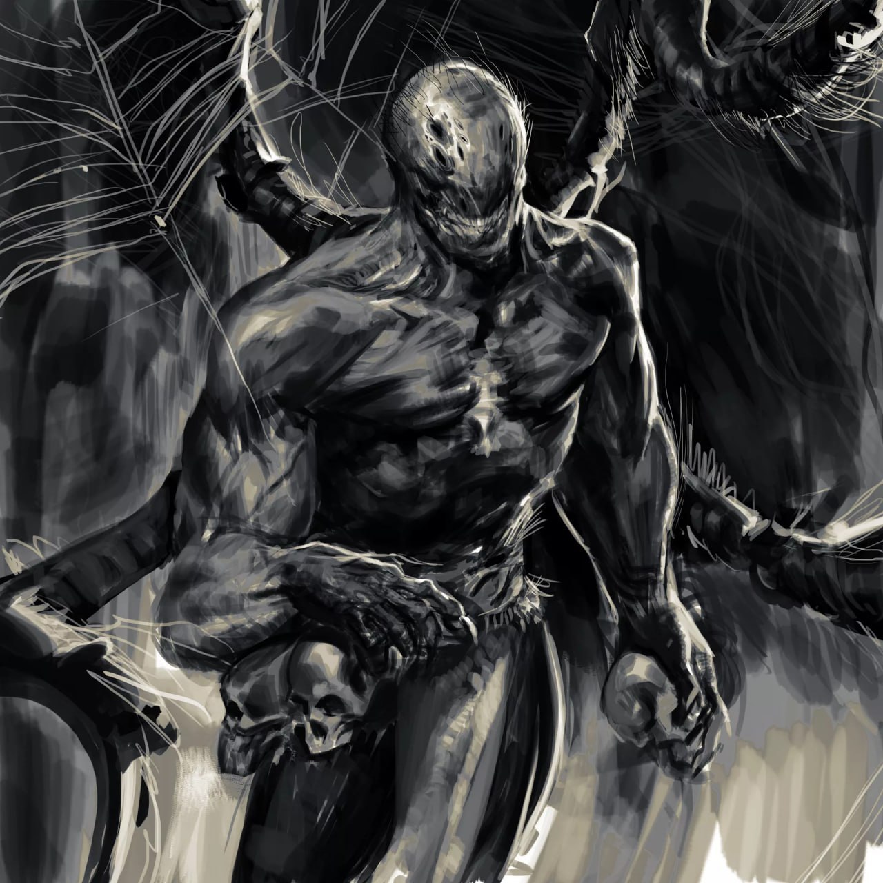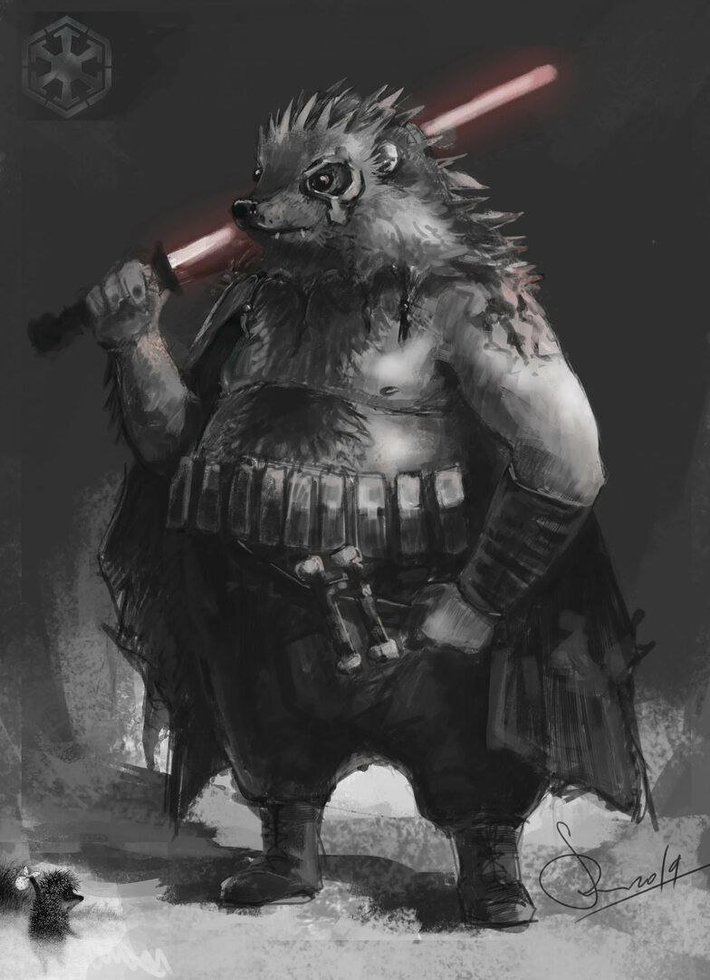 Разведчик Хрящехрык, с рисунком из одной палки и трёх пар кружков на шкуре, гнолл, который выжил.