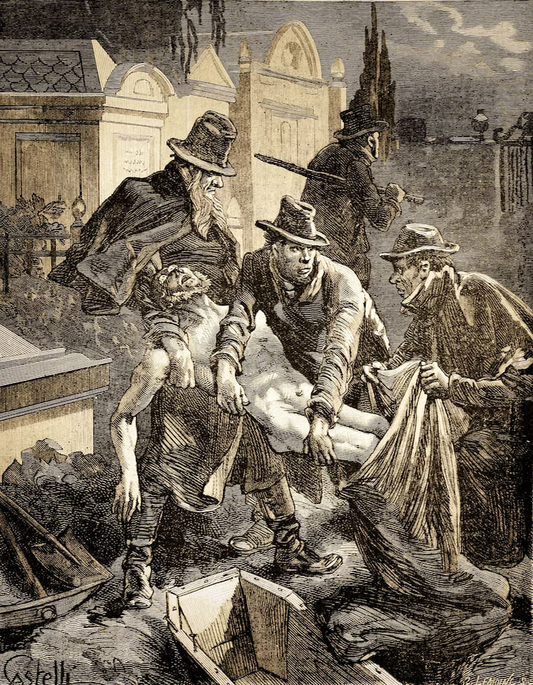 Стояла теплая погода, мимо шныряли летучие мыши, над головой сверкали яркие звезды. Я услышал в отдалении чьи-то шаги, но они не приближались к нам, и я не видел причин поднимать тревогу. Я патрулировал наш маленький участок почти лениво. Через некоторое время над головой, снижаясь, пронеслось нечто крупное. Это нечто, однако, не приземлилось рядом с нами и не делало попыток приблизиться к нам. Немного позже нечто столь же крупное снова пронеслось, снижаясь, хотя и не в том же направлении, что и первое, и тоже не стало к нам приближаться; я был начеку, но сигнала не подавал. Вскоре после этого я услышал топот лошадиных копыт на тропинке, звуки спешивающихся всадников, потом шаги. Скрипнул, останавливаясь, фургон, и я услышал, как ставят тормоз. Прибывшие разбрелись по кладбищу, с разных сторон до меня доносился их шепот. От всей этой суеты я почувствовал себя неуютно. Расширил зону патрулирования и вскоре тут и там стал различать стук лопат.