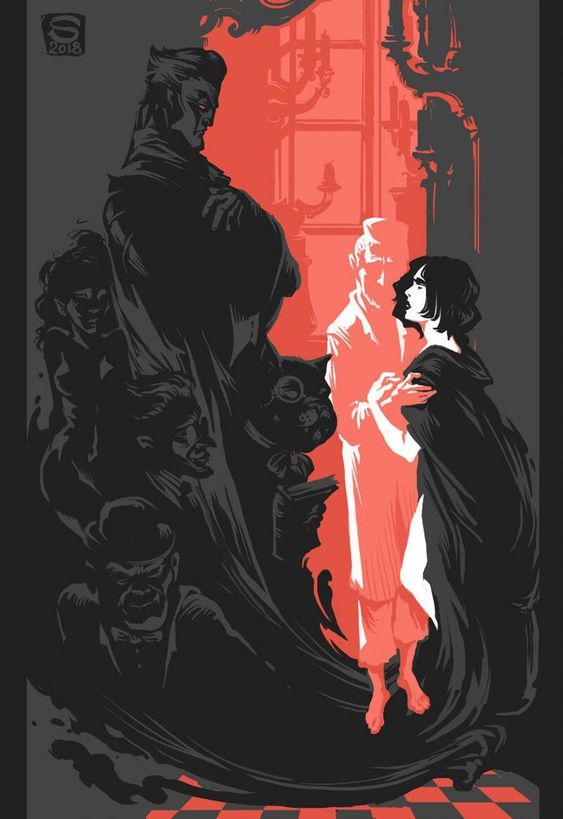 Сцена сменяется, мы переходим в другой мир, где наступает время снять маски и показать настоящий лица. Бегемот становится Пажом, Коровьев становится Фаготом.